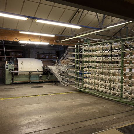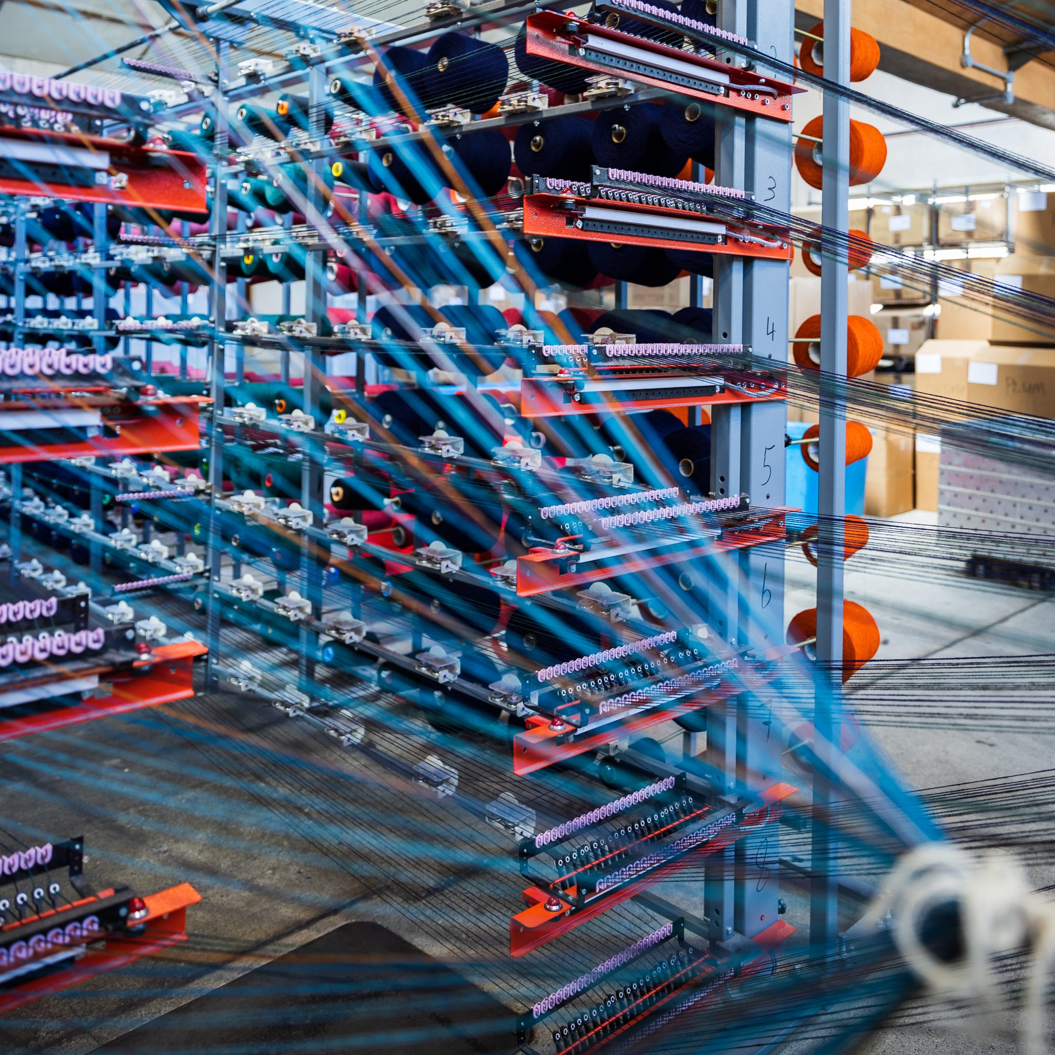 Every throw begins with warping, the foundation of the weaving process. Here, hundreds of threads are precisely arranged and wound onto a beam to form the base of the fabric. This step requires not just technical precision, but an artist’s eye — as the colours and textures of each yarn are carefully selected to achieve the desired palette and pattern. It’s the moment when our creative vision begins to take shape.