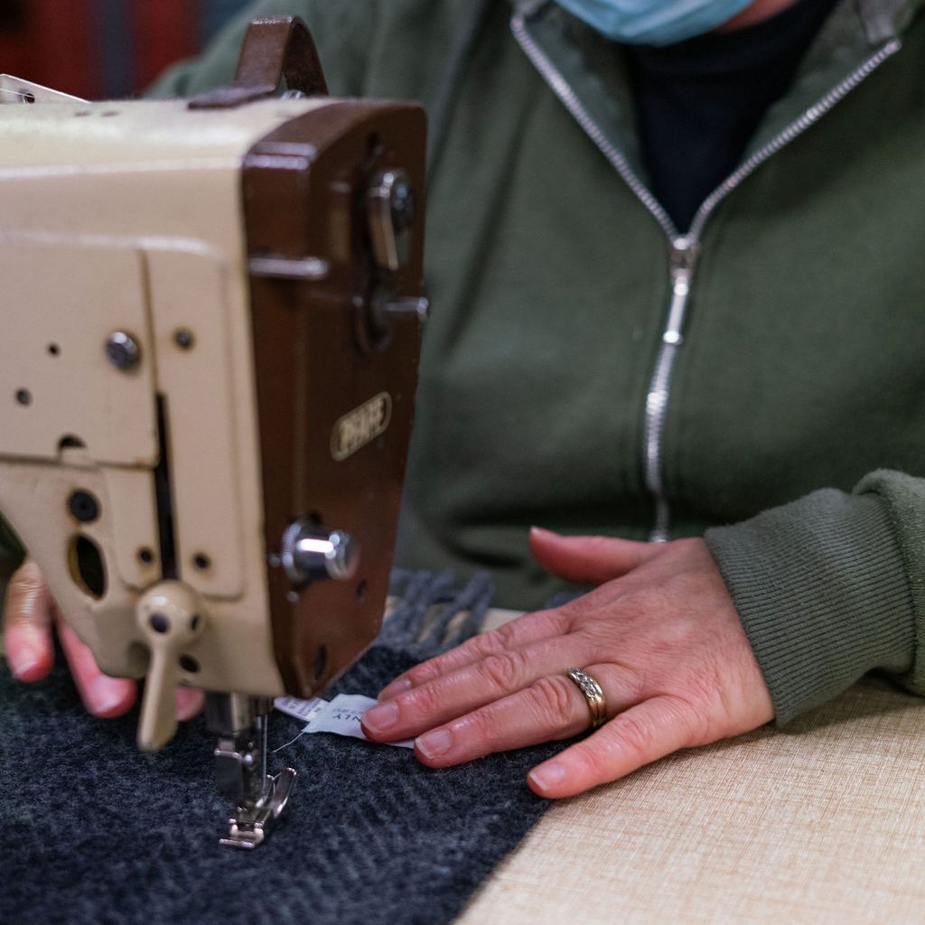 Once mending is complete, each throw and scarf is cut to size with exacting accuracy. This step ensures uniformity and balance, preparing the fabric for its final transformation. Precision cutting allows us to maintain the integrity of our designs, ensuring every product is proportioned to perfection.