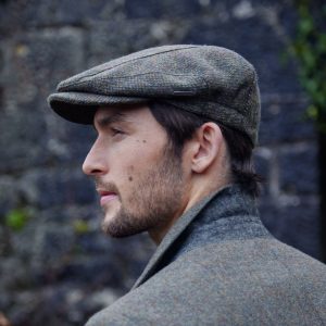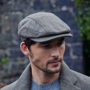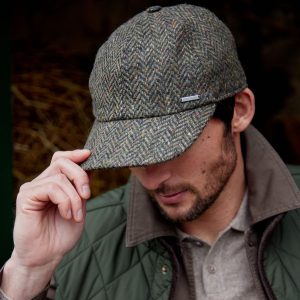 Tweed Sports Cap Brown Green Donegal Herringbone