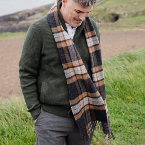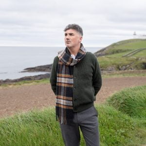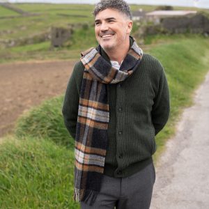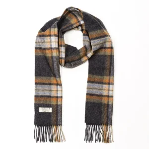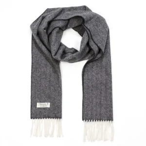 Irish Wool Scarf Long Charcoal Grey Check