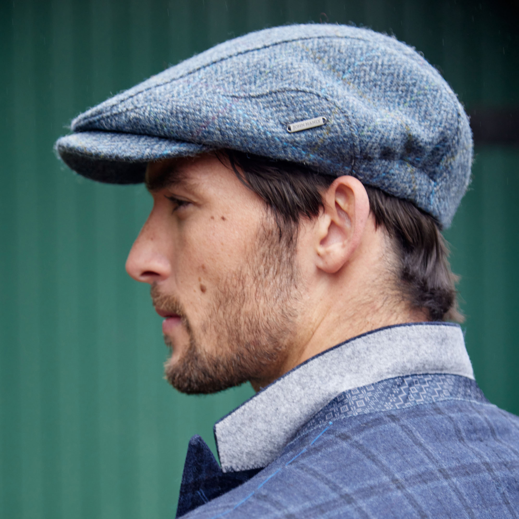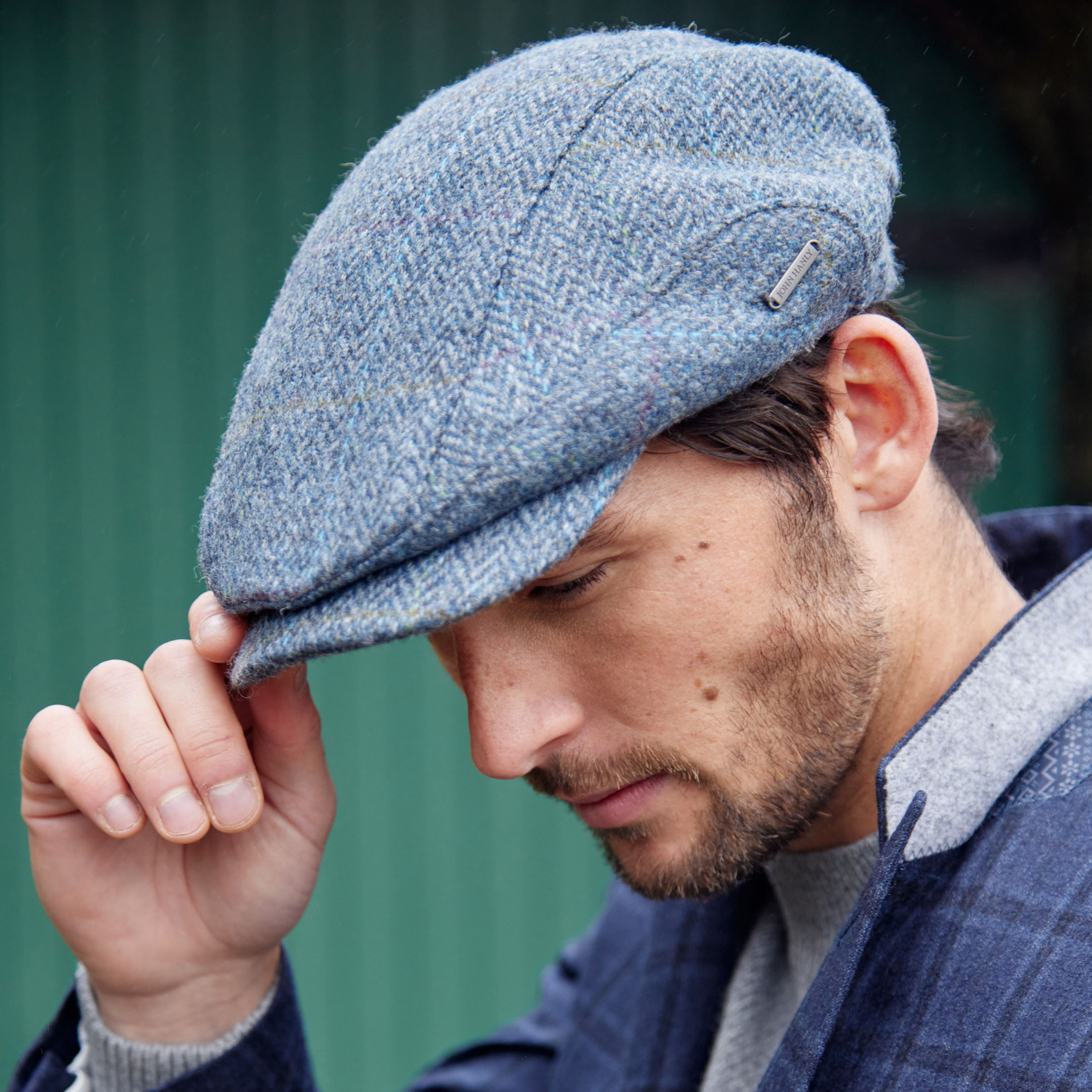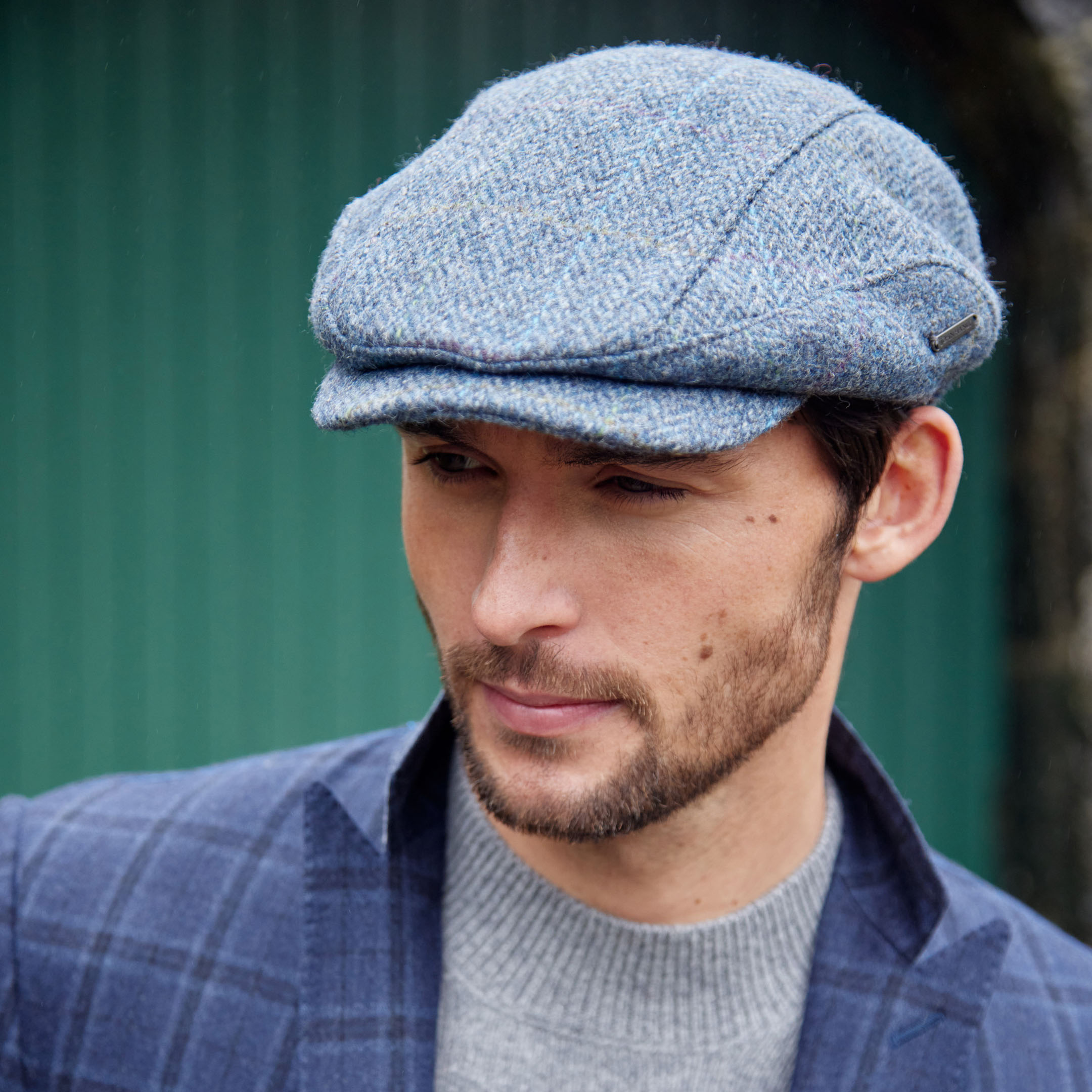 DC H84 – Driving Cap Beige Green Herringbone