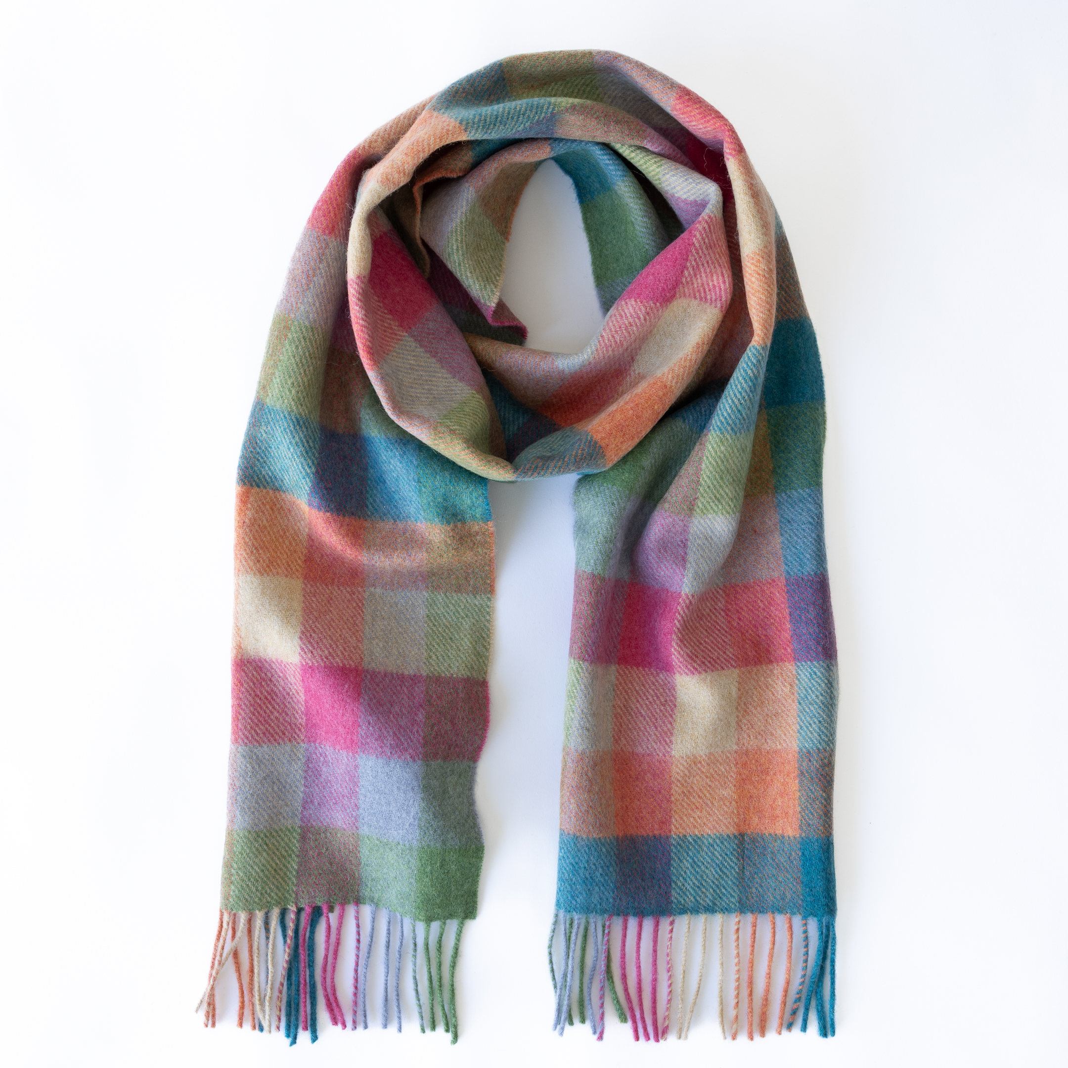 Representing a range of beautiful colours blended in various patterns of checks, windowpanes and tartans. 100% Lambswool.
