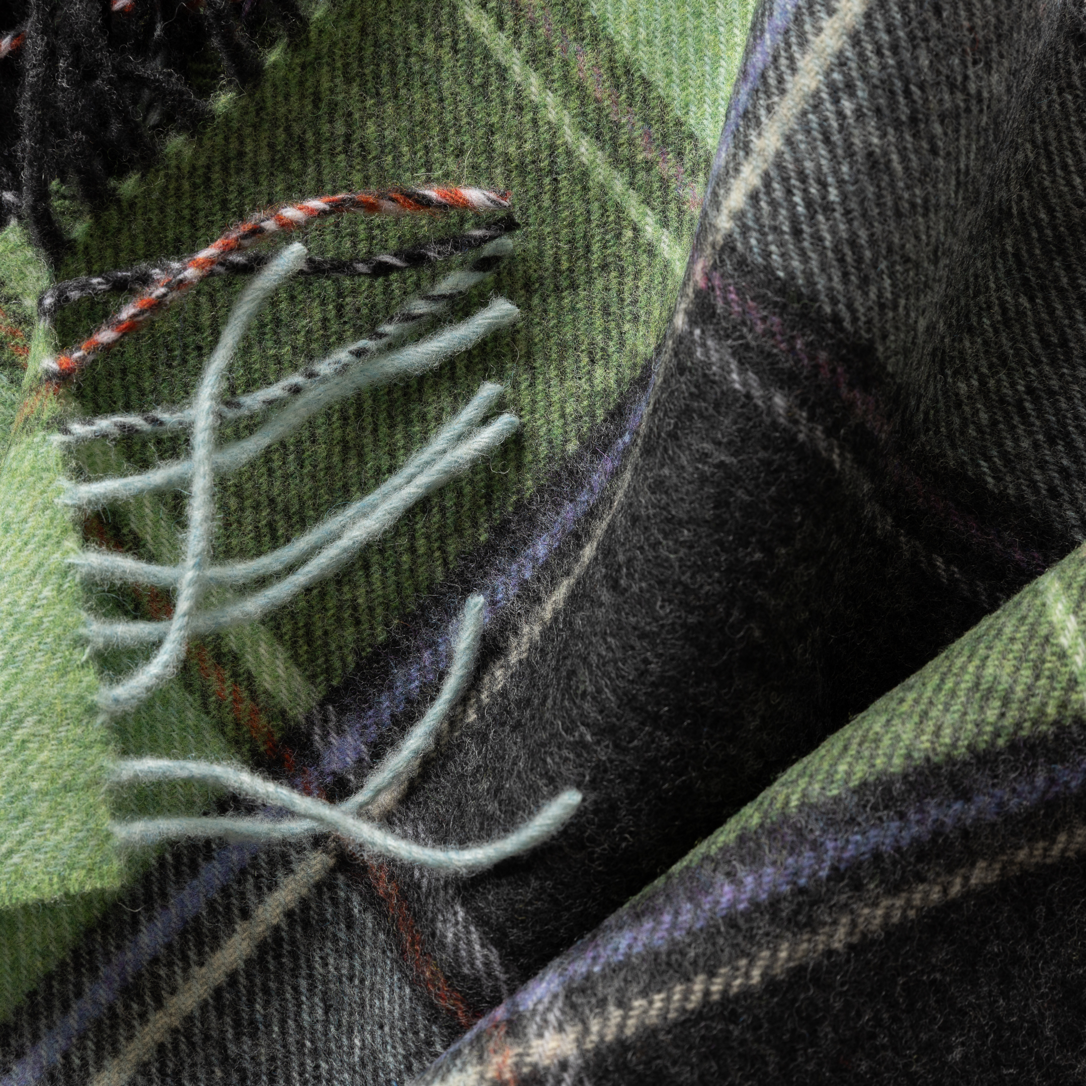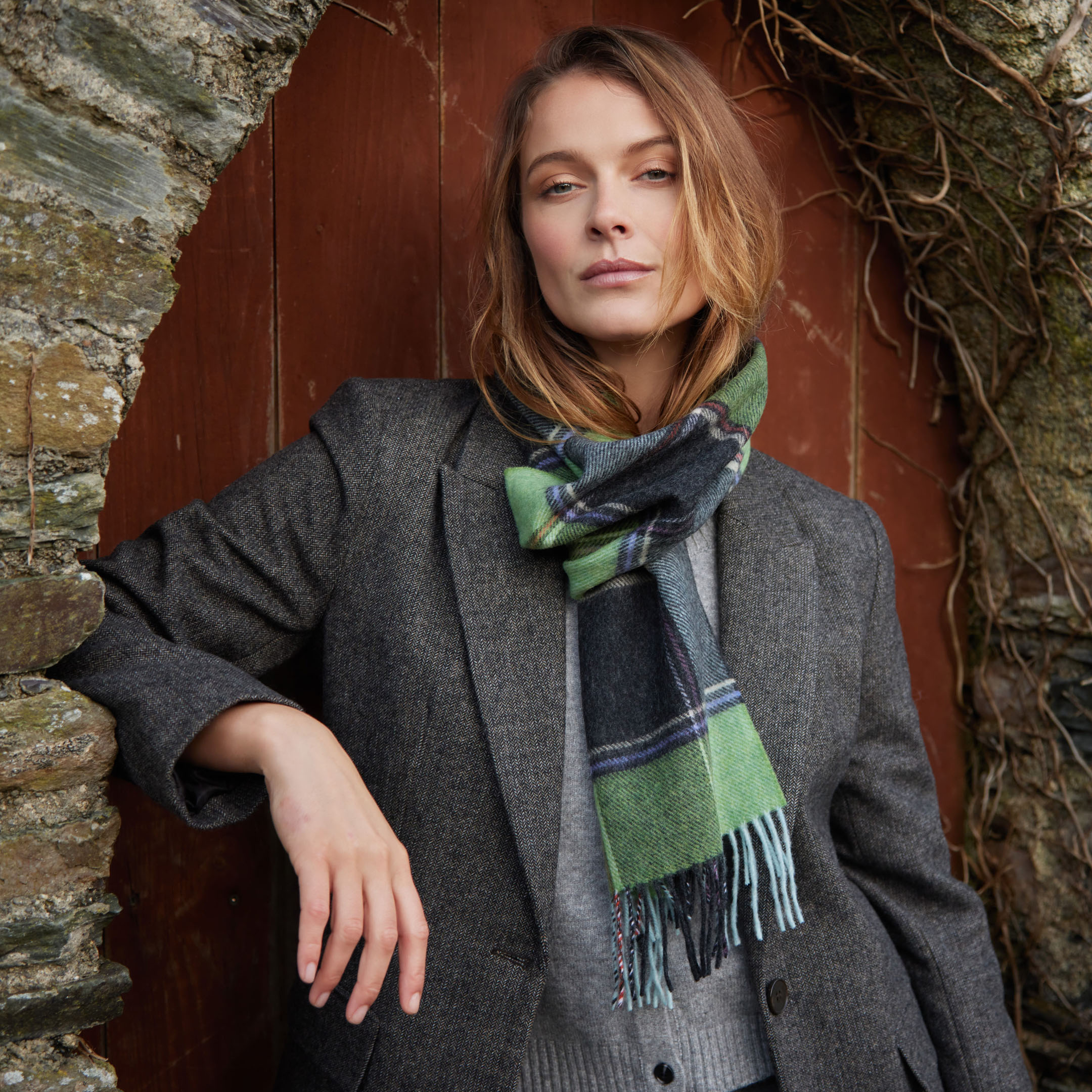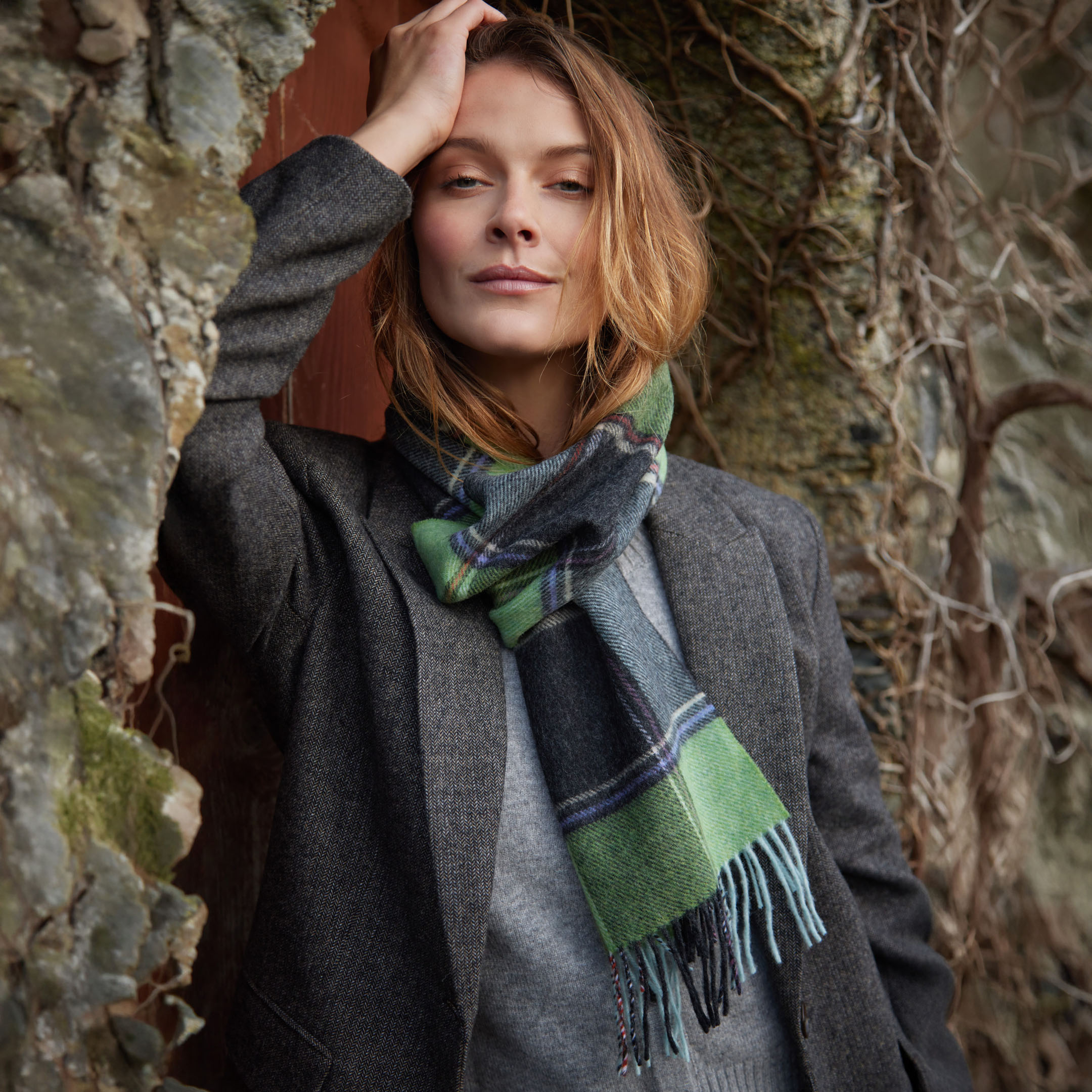 1913 – Irish Wool Scarf Long Green Charcoal Multi Block Check