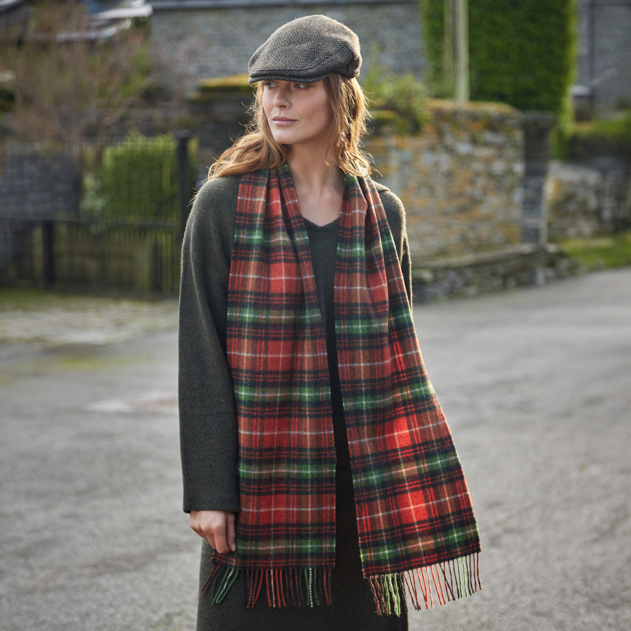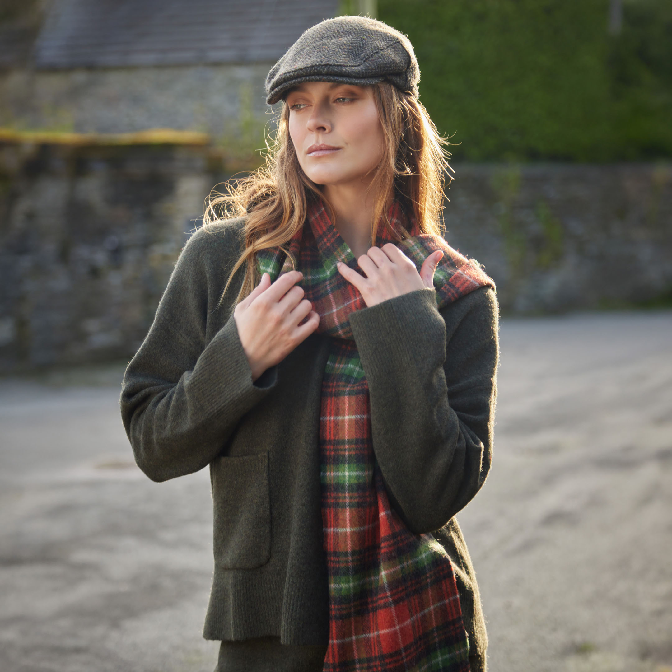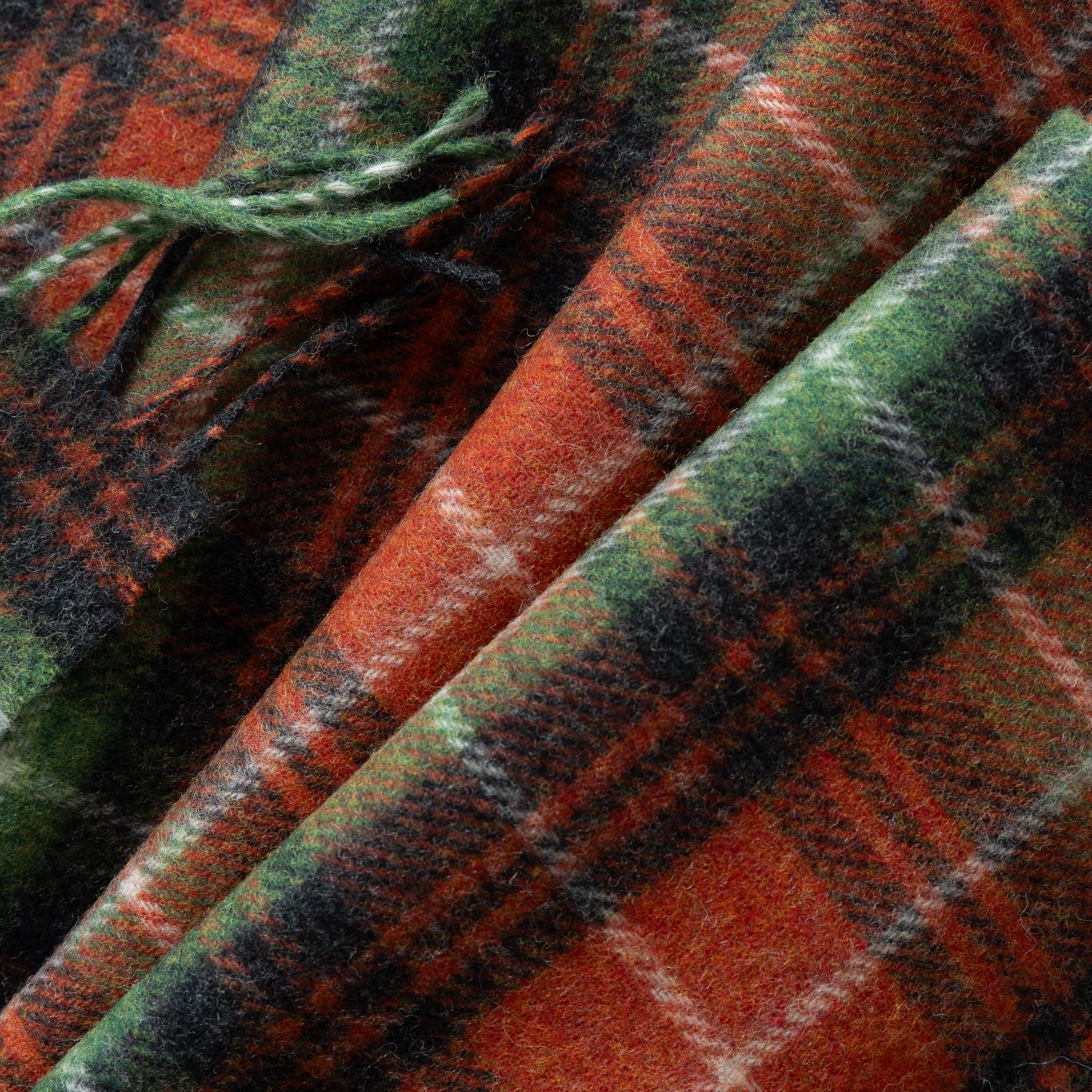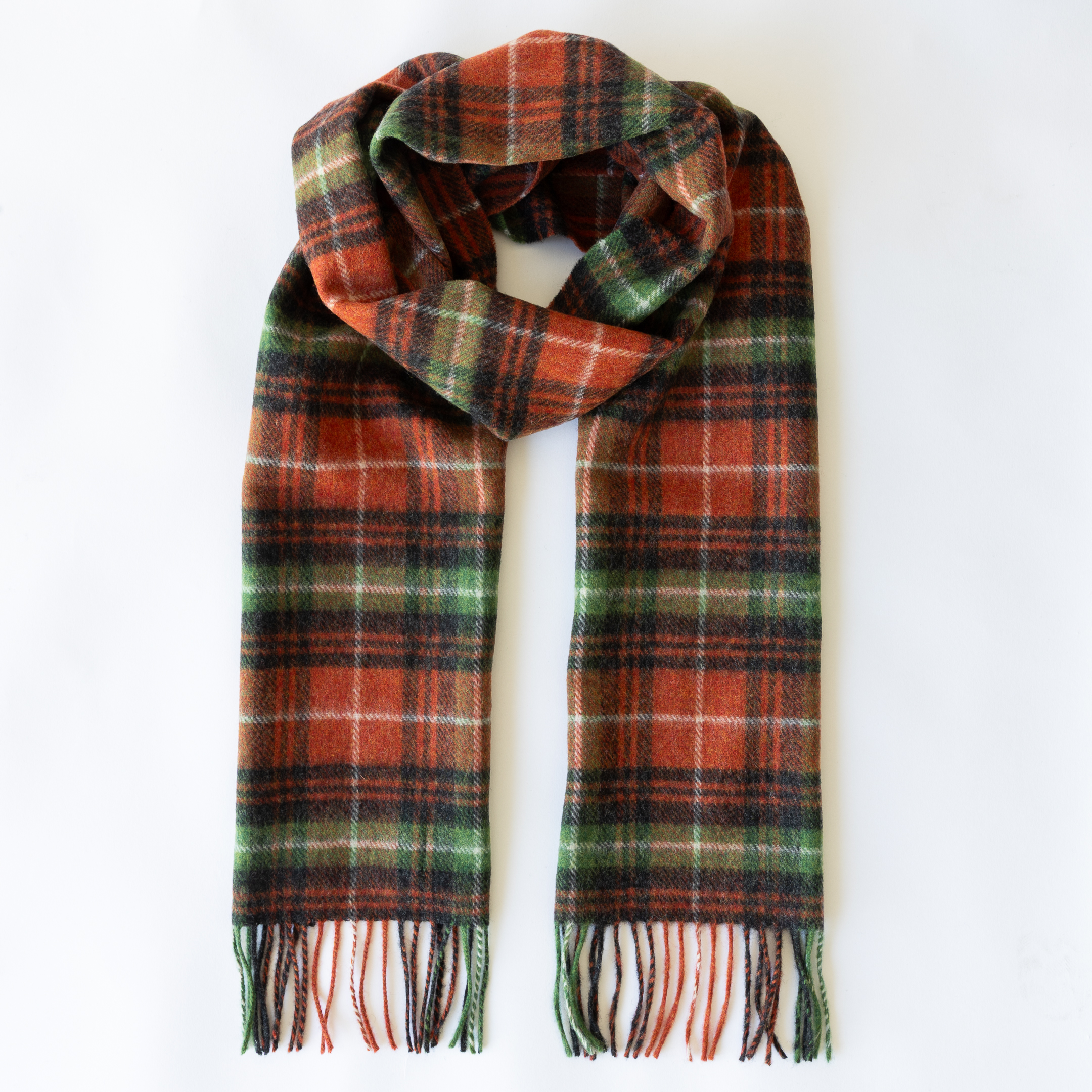 1942 – Irish Wool Scarf Long Rust Orange Green Charcoal Check