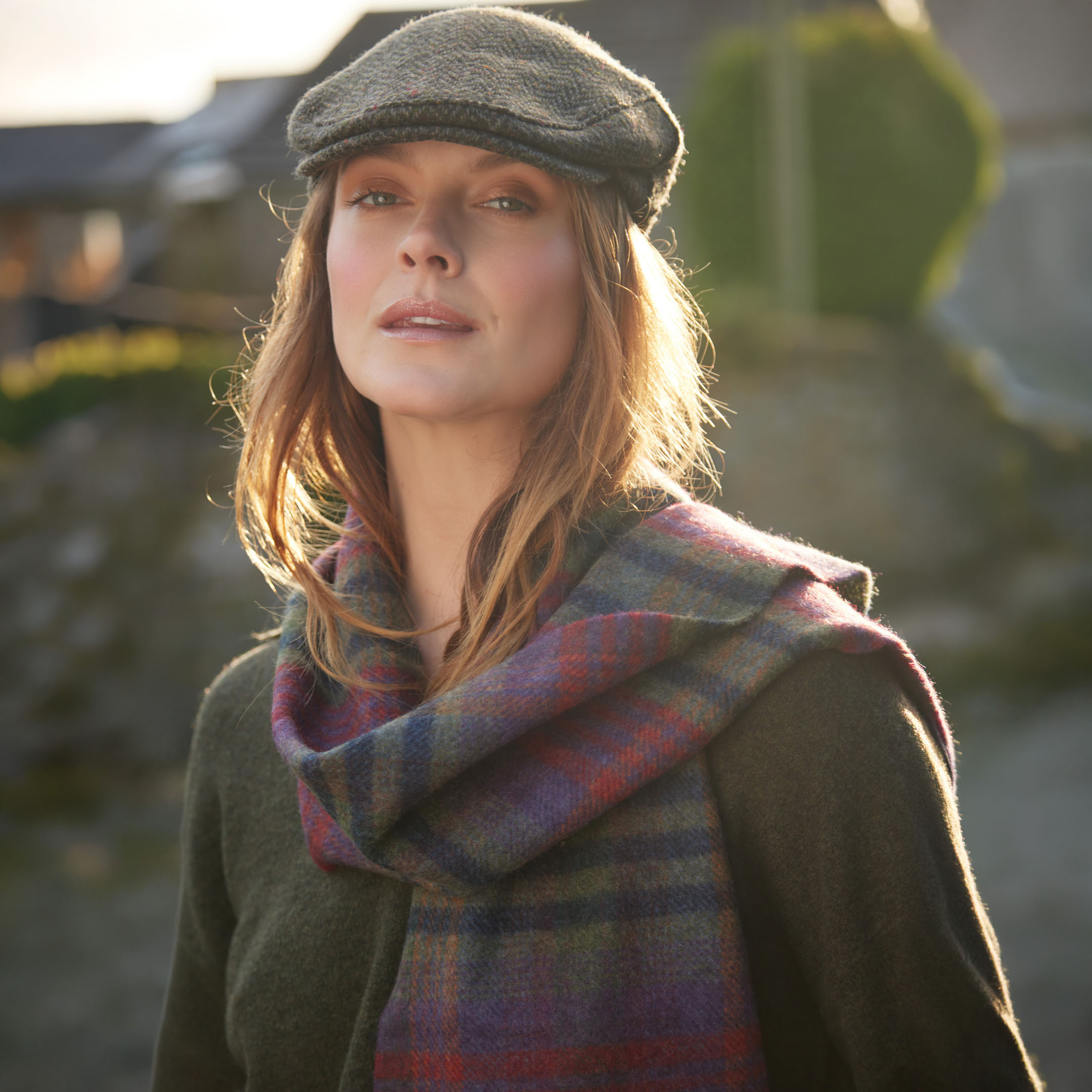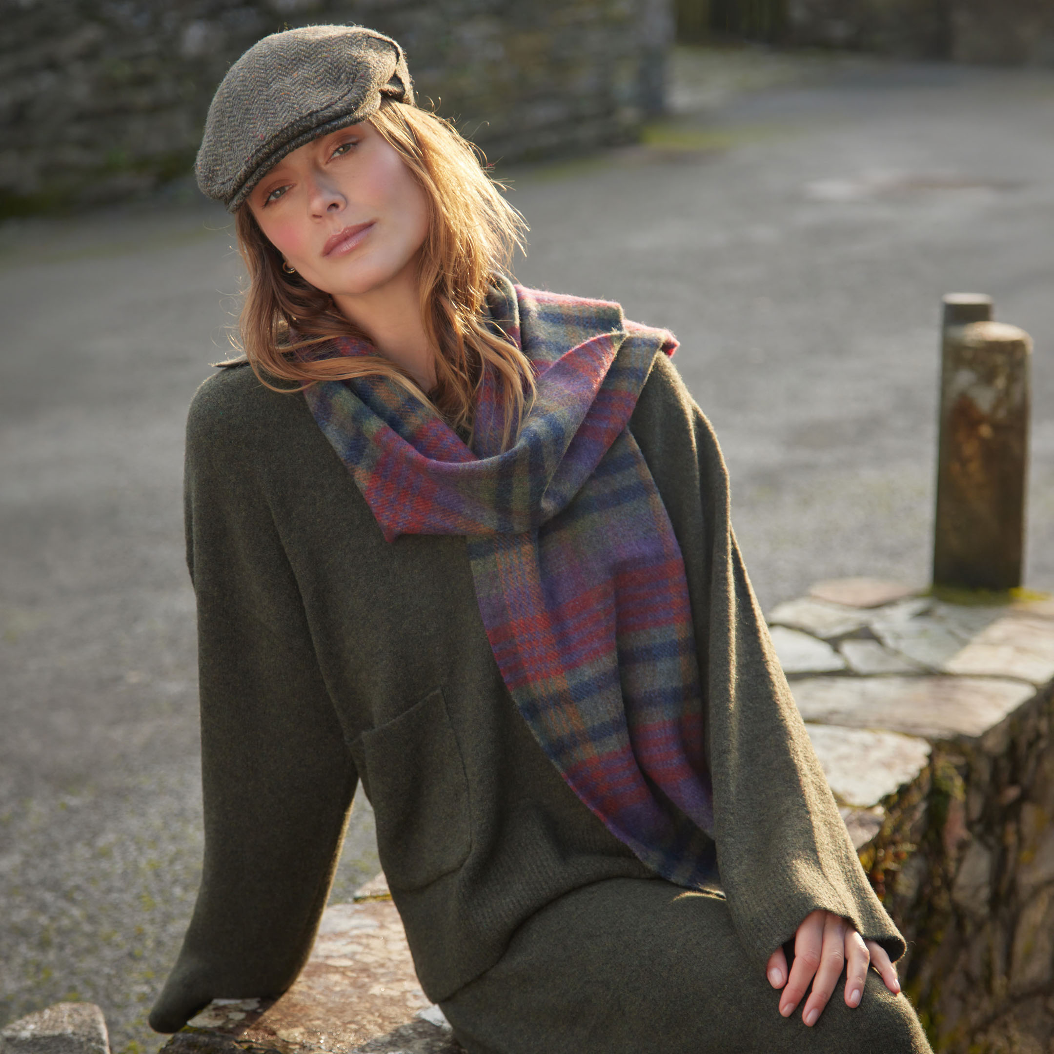 1943 – Irish Wool Scarf Long Green, Mustard and Purple Check