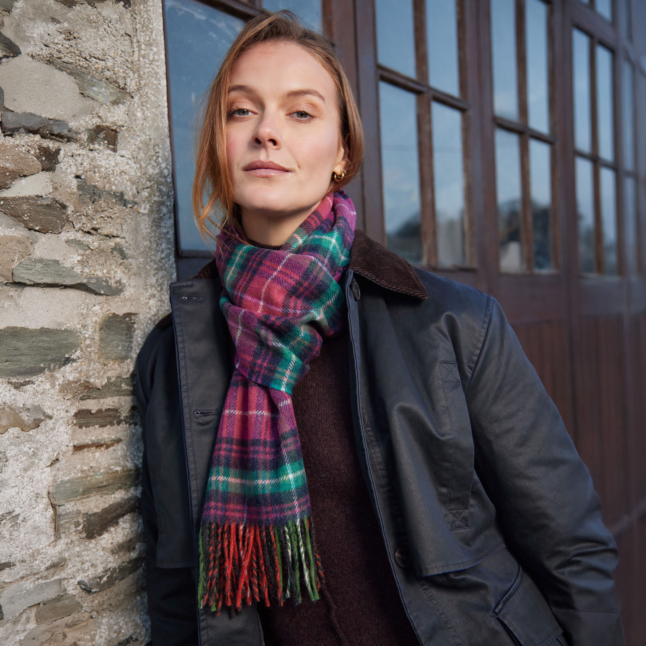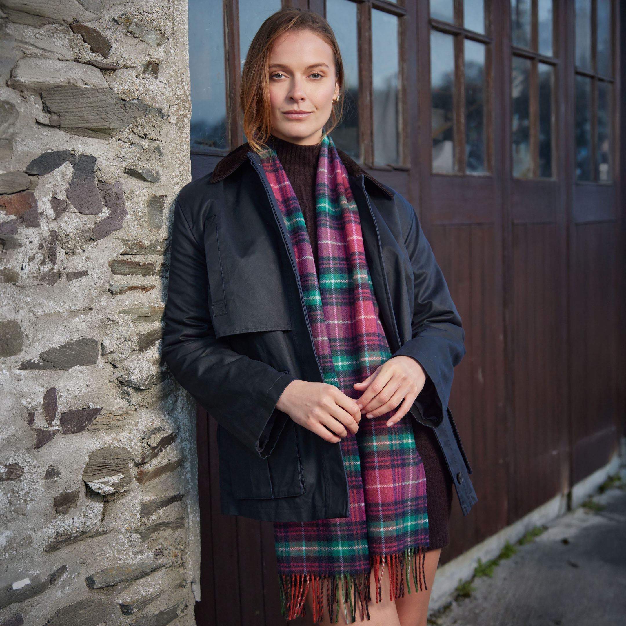1951 – Irish Wool Scarf Long Pink Teal Green Navy Check
