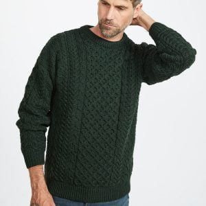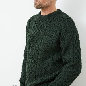 The Aran Woollen Mills in Mayo offers a collection of traditional Aran Sweaters, named after the Aran Islands off the west coast of Ireland. These jumpers are typically off-white in colour and feature cable patterns on the body and sleeves. Originally, they were knitted using unscoured wool that retained its natural oils, making them water-resistant and wearable even when wet. Our partnership with Aran Woollen Mills has enabled us to offer some of the best versions of these sweaters in the world and we are hugely proud to be able to do so.
