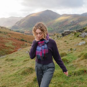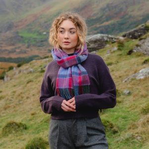Irish Wool Scarf Long Navy Turquoise Purple Check