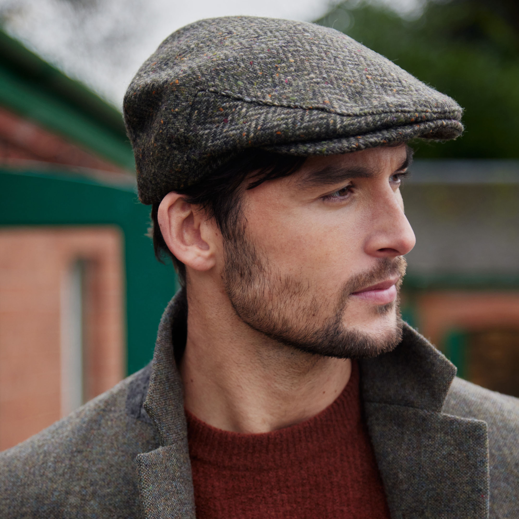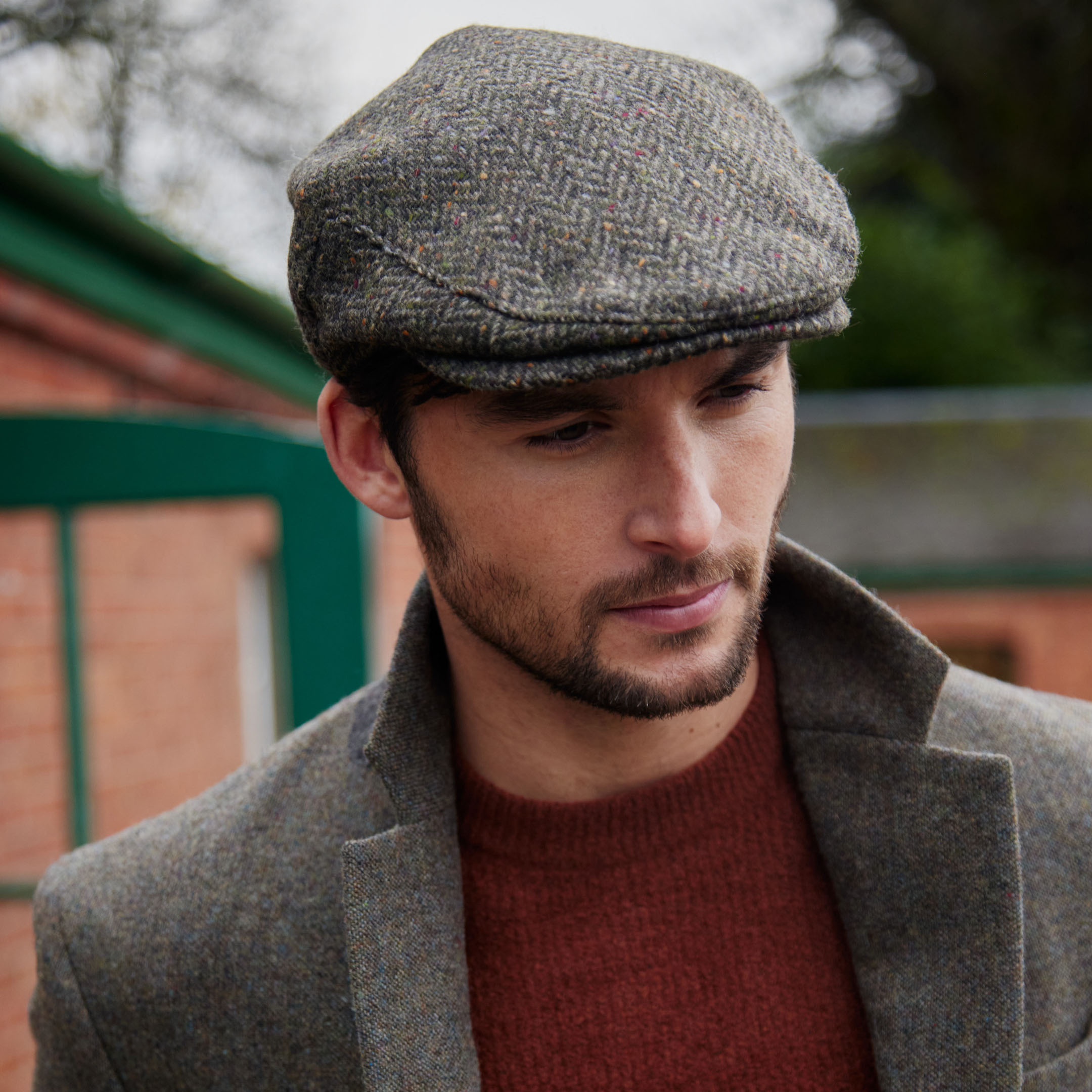 Irish Tweed Cap Brown Green Donegal Herringbone. Our Classic Irish Tweed Flat Cap embodies the essence of Irish tradition and modern elegance. Expertly woven in Ireland from 100% pure wool, this cap offers warmth, comfort, and enduring quality. Available in a curated selection of traditional and contemporary colours, it’s a versatile accessory that elevates both casual and formal looks. Whether you’re embracing your heritage or simply appreciating timeless craftsmanship, this quintessentially Irish cap will keep you stylishly ahead of the rest.