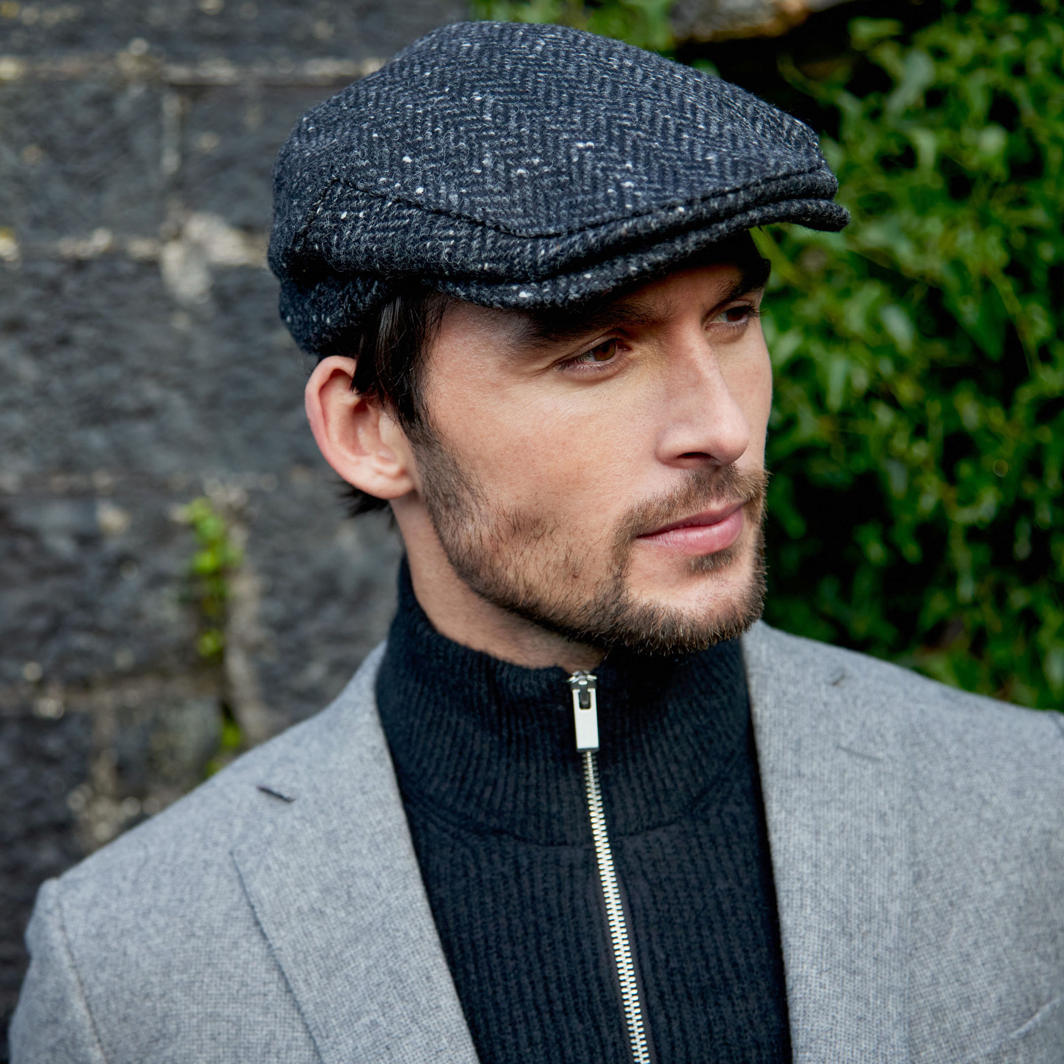 Irish Tweed Cap Charcoal Black Herringbone Donegal. Our Classic Irish Tweed Flat Cap embodies the essence of Irish tradition and modern elegance. Expertly woven in Ireland from 100% pure wool, this cap offers warmth, comfort, and enduring quality. Available in a curated selection of traditional and contemporary colours, it’s a versatile accessory that elevates both casual and formal looks. Whether you’re embracing your heritage or simply appreciating timeless craftsmanship, this quintessentially Irish cap will keep you stylishly ahead of the rest.