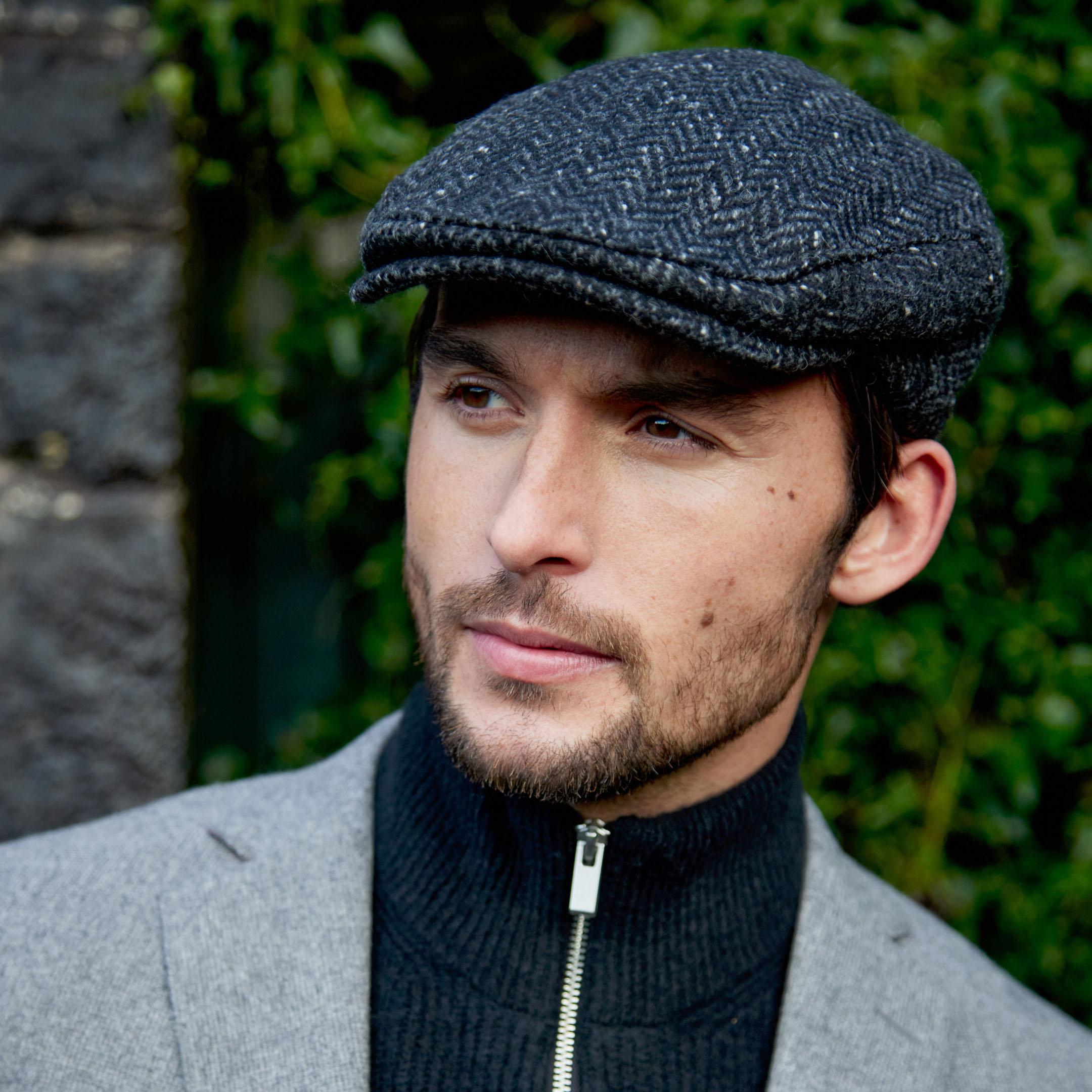Irish Tweed Cap Charcoal Black Herringbone Donegal
