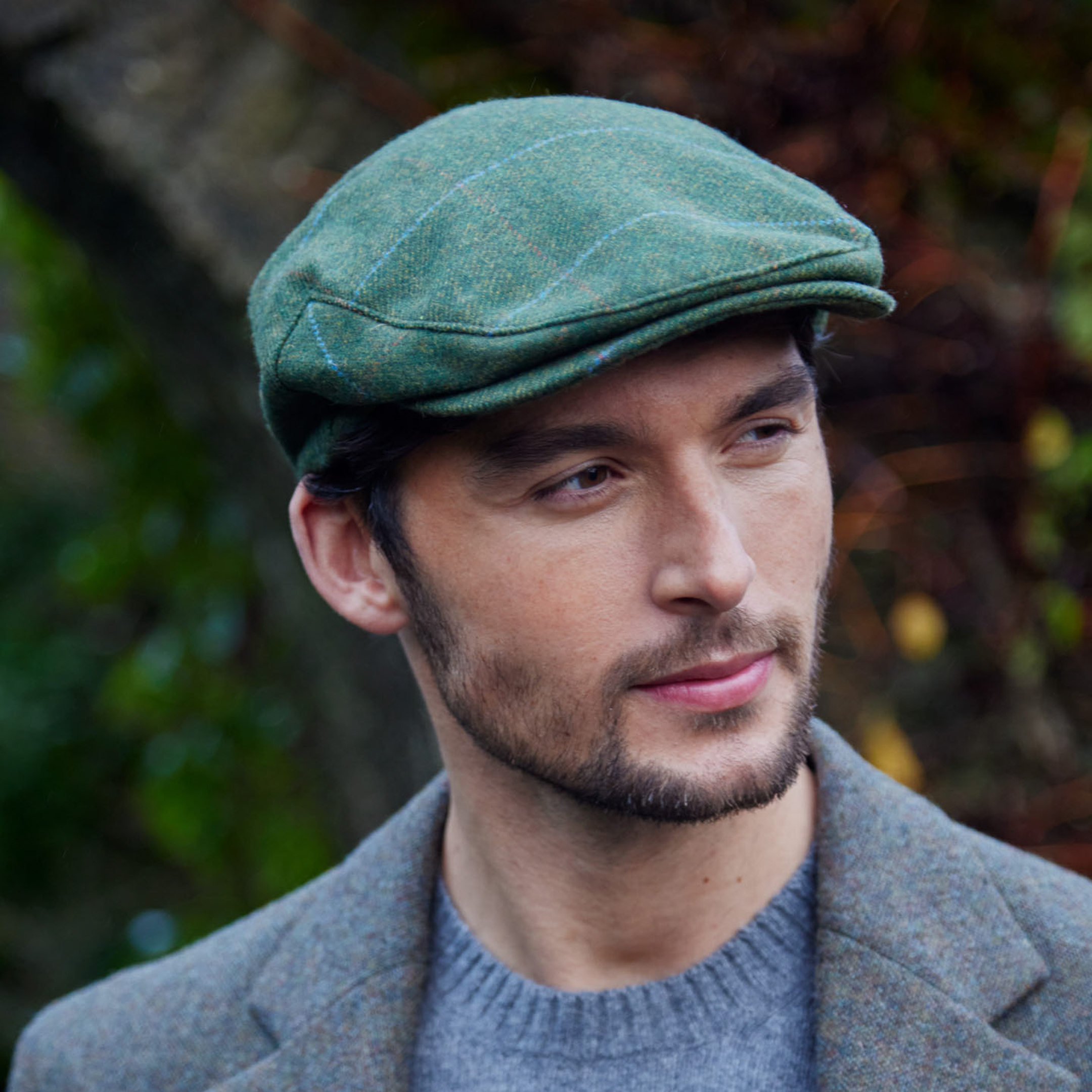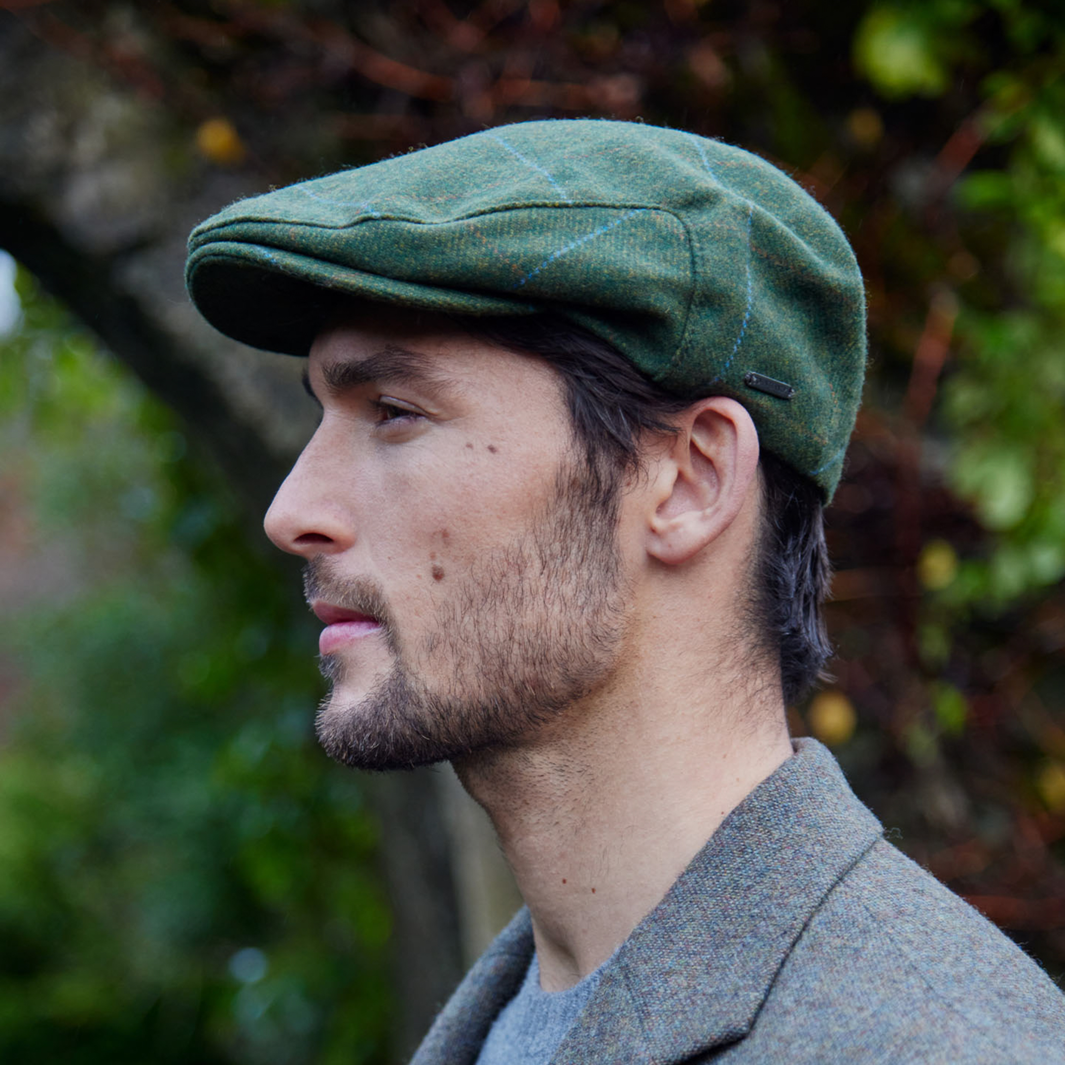 Irish Tweed Cap Pine Green with Overcheck. Our Classic Irish Tweed Flat Cap embodies the essence of Irish tradition and modern elegance. Expertly woven in Ireland from 100% pure wool, this cap offers warmth, comfort, and enduring quality. Available in a curated selection of traditional and contemporary colours, it’s a versatile accessory that elevates both casual and formal looks. Whether you’re embracing your heritage or simply appreciating timeless craftsmanship, this quintessentially Irish cap will keep you stylishly ahead of the rest.