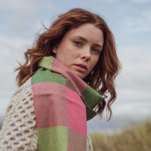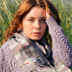 Lambswool Cape Green Mix with Blue Tartan. Soft, warm and effortlessly stylish, the John Hanly Lambswool Cape is a versatile layer for any season. Woven from 100% pure lambswool in our Tipperary mill, it combines cosy comfort with a contemporary drape. Designed in a one-size-fits-all silhouette, it flatters every shape and adds an elegant finish to both casual and dressy looks. The popular Sue style comes without a fringe for a clean, modern edge, while the rich checks and colours bring timeless Irish charm to your wardrobe.