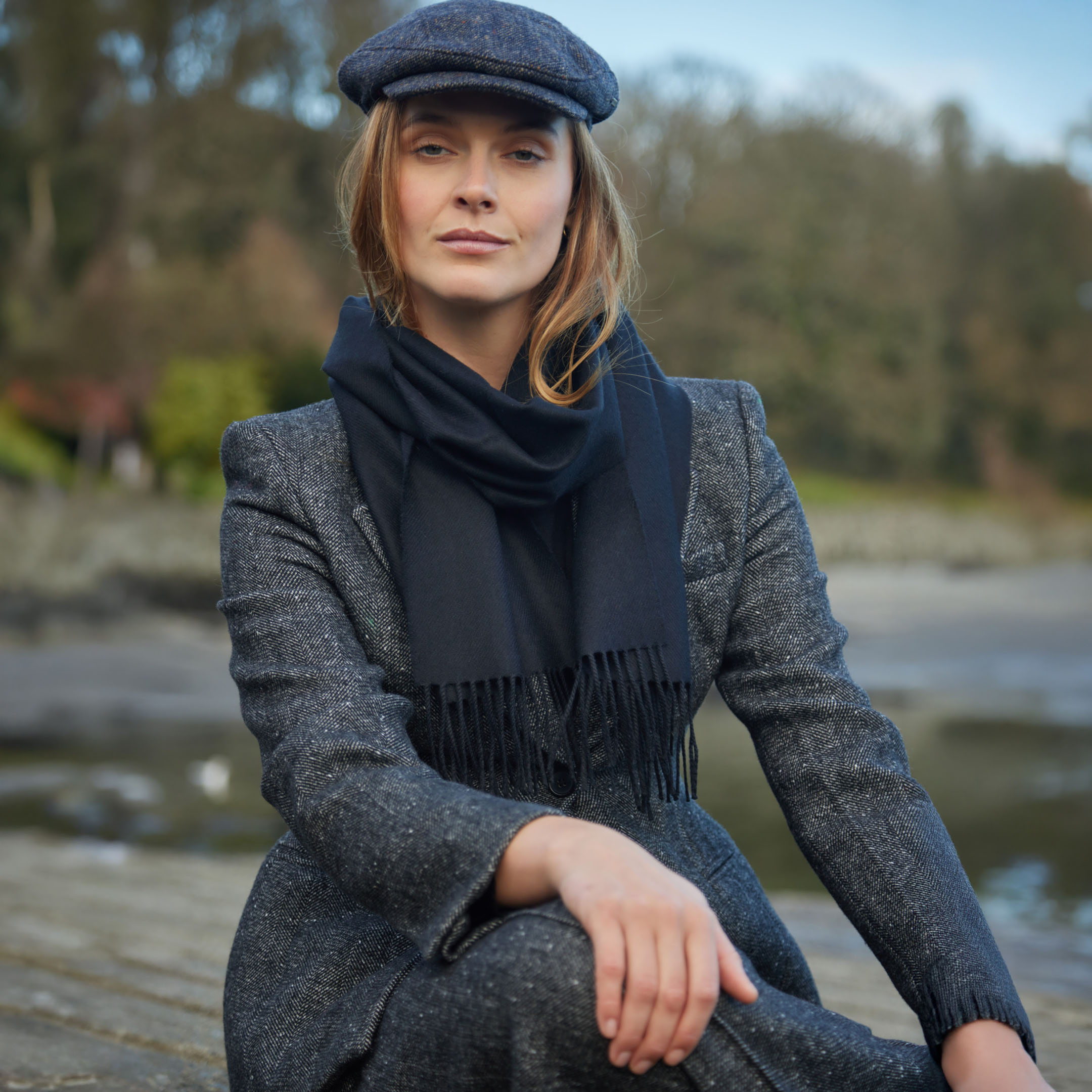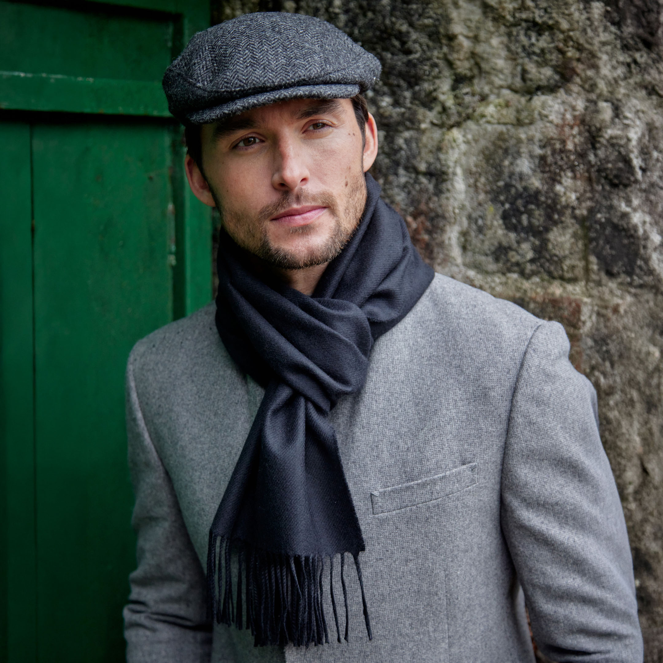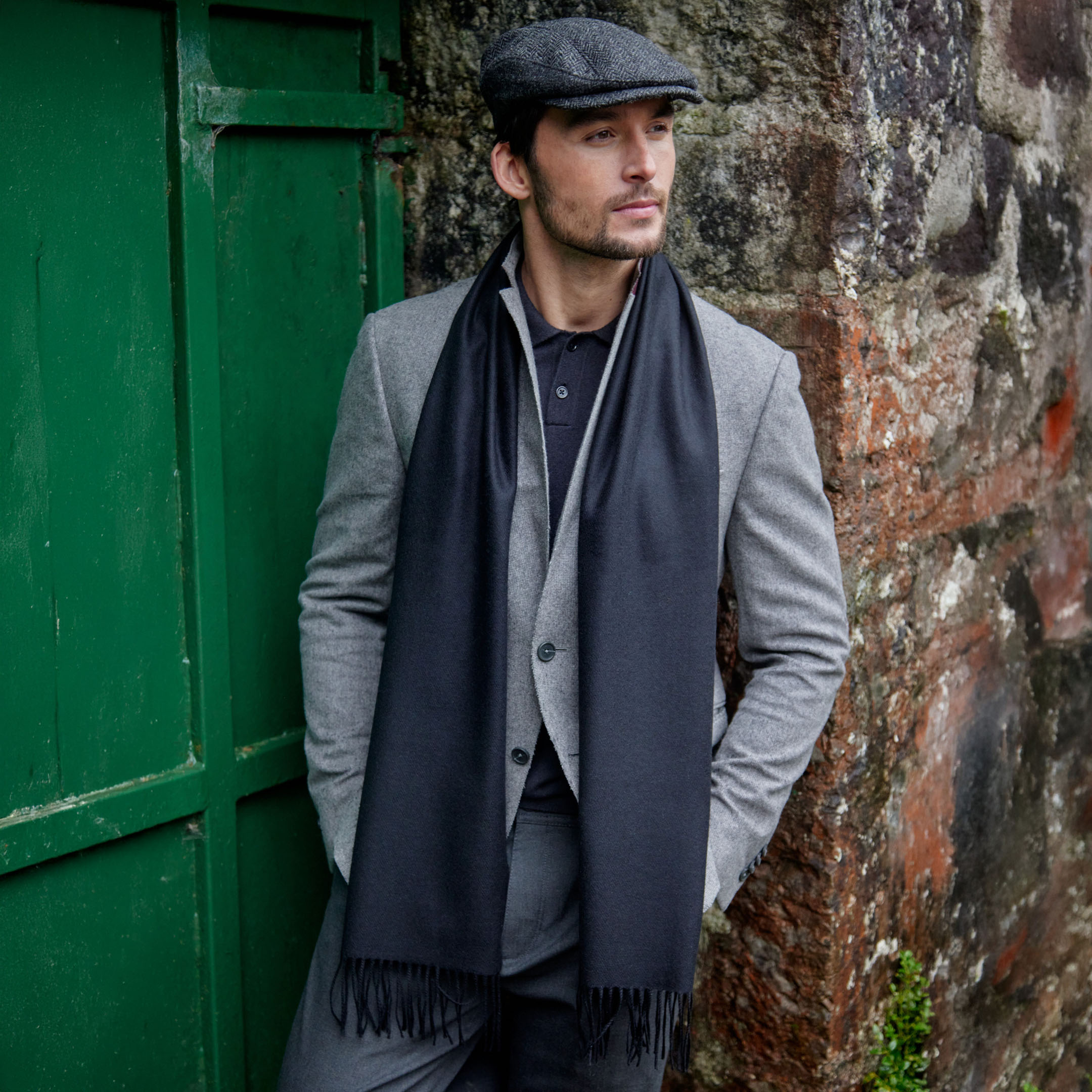 Merino Luxury Wool Scarf Black. A vibrant and stylish collection that provides a beautiful mix of colours, patterns and is incredibly soft to the touch. 100% Fine Merino Brushed Wool.