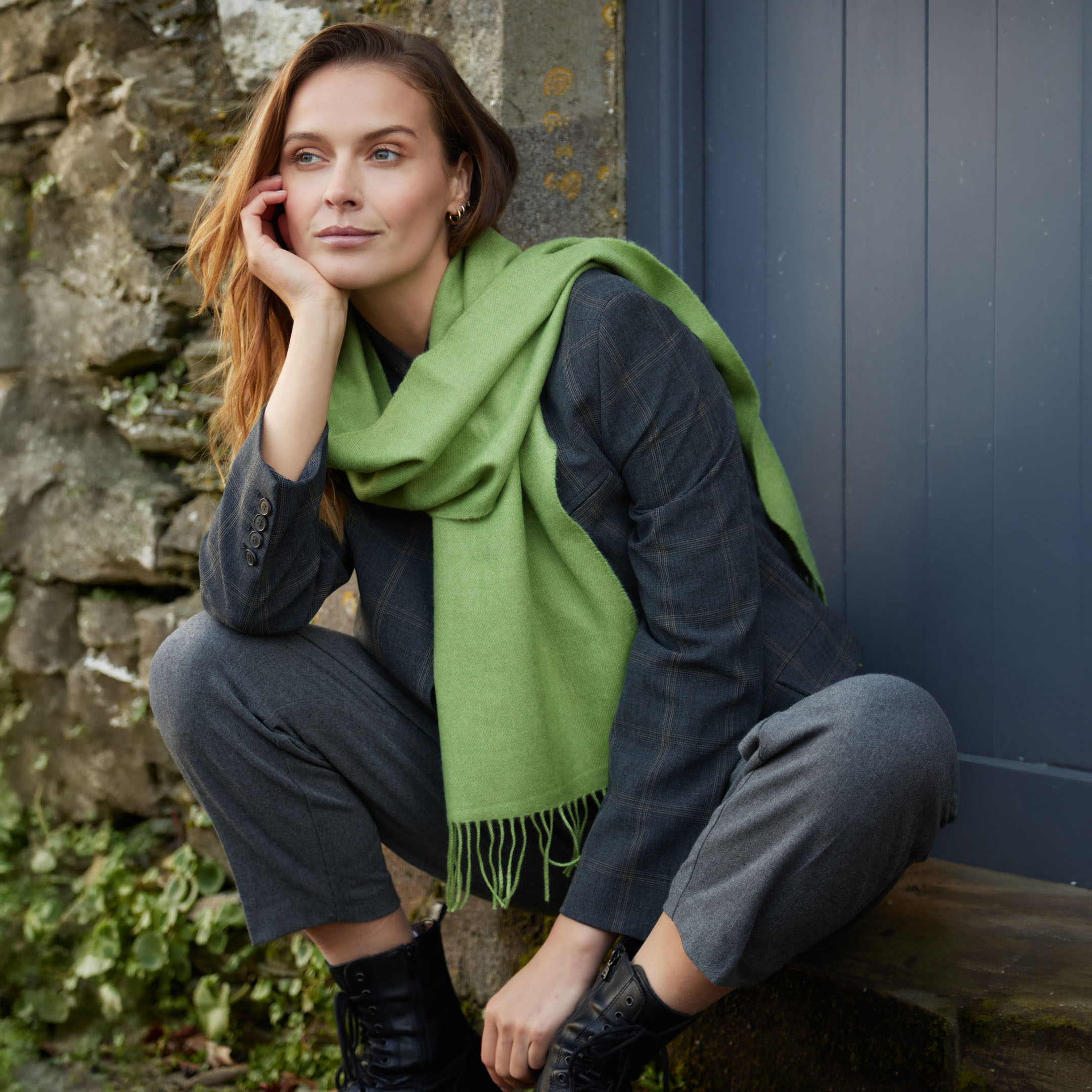 Merino Luxury Wool Scarf Solid Avocado Green. A vibrant and stylish collection that provides a beautiful colour, and is incredibly soft to the touch. 100% Fine Merino Brushed Wool.