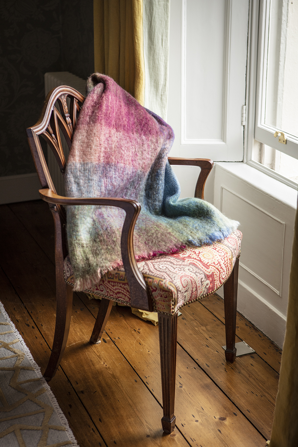 Mohair Throw Watercolour Monet. Add warmth, texture, and timeless style to your home with our luxurious Mohair Throw. Expertly woven from a blend of 70% Mohair and 30% Wool, this throw is naturally lightweight yet exceptionally warm, making it the perfect companion for cosy evenings. Its soft, voluminous texture and gentle sheen bring elegance to any setting, whether draped across a sofa, layered on a bed, or casually placed over a chair for a pop of colour. Versatile and effortlessly stylish, the Mohair Throw is more than just a blanket — it’s a statement piece that transforms your living space with comfort and character.