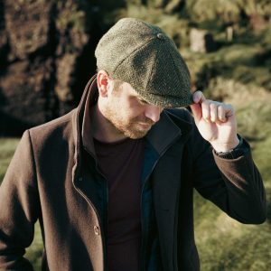Eight Piece Newsboy Cap Moss Green Donegal Herringbone