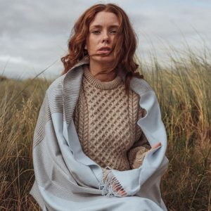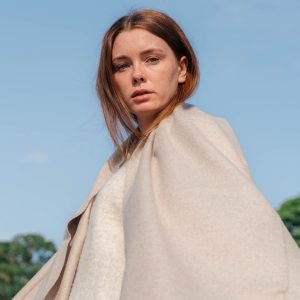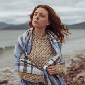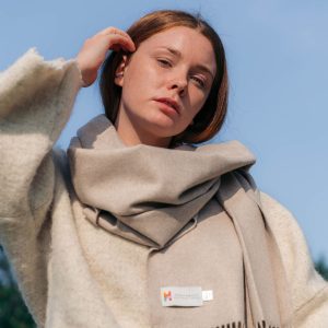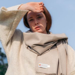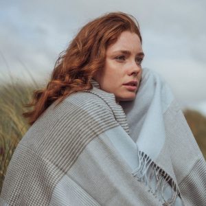 Merino Wool Cashmere Throw Aqua Cream Purple Herringbone