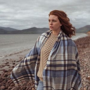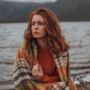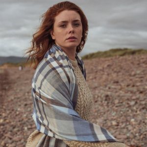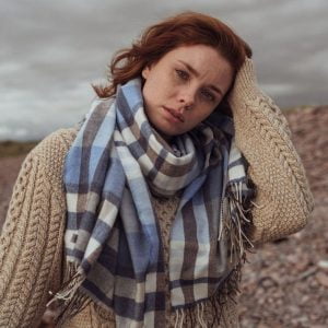 Irish Wool Scarf Long Navy Turquoise Purple Check