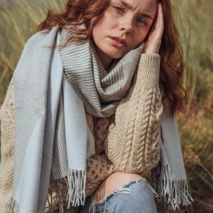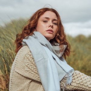 Irish Cashmere Merino Scarf Blue Navy Herringbone